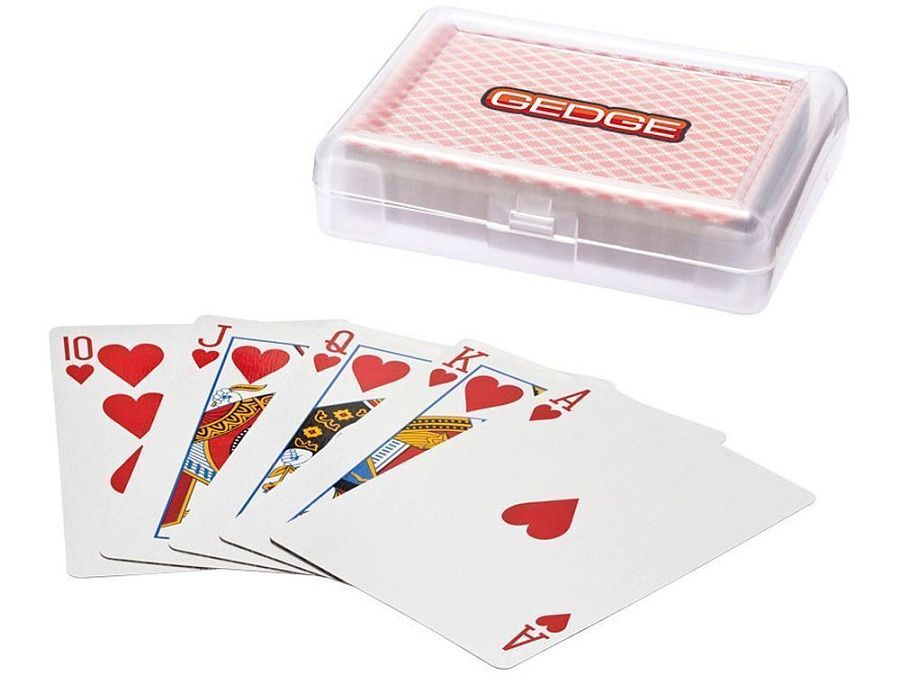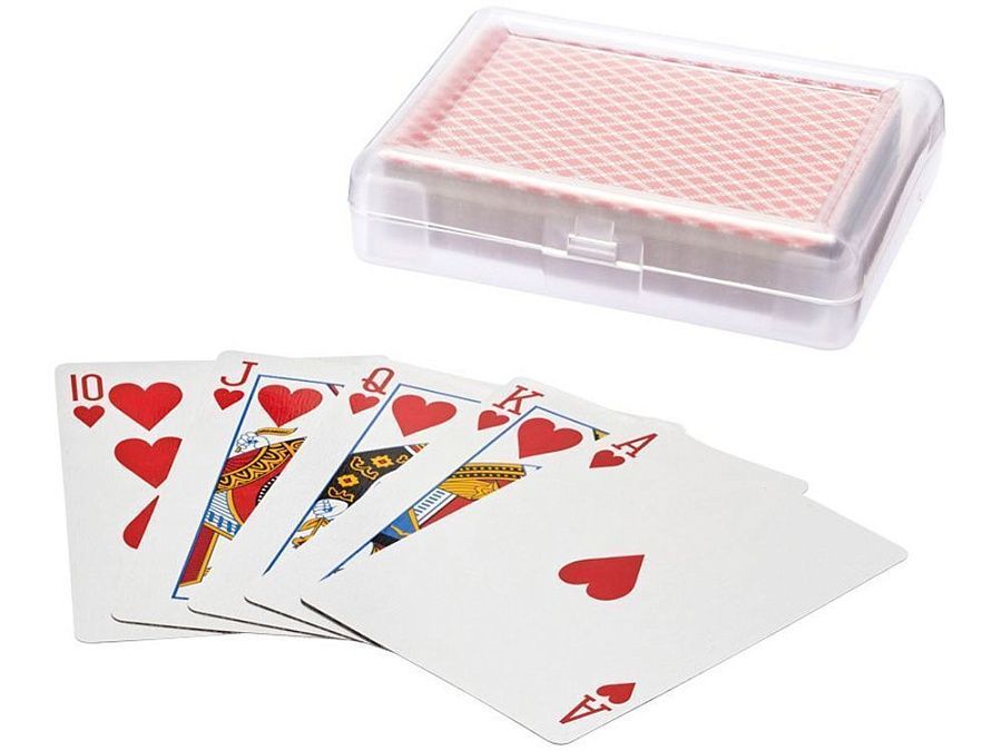 Карточная игра Reno в футляре. Классическая карточная колода с 3 джокерами. Упакована в пластиковый футляр.