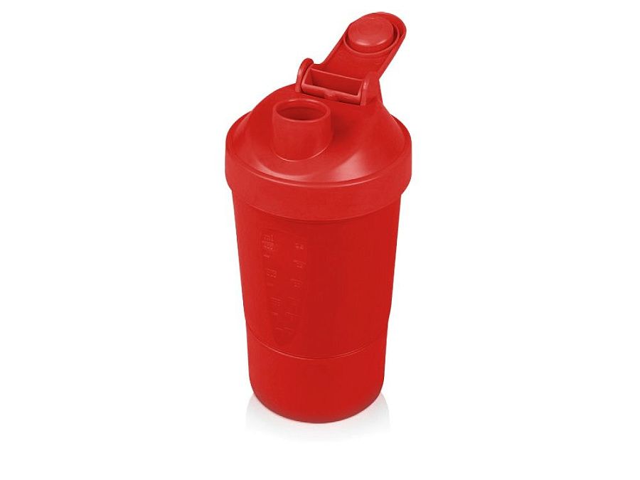 Шейкер для спортивного питания - это один из необходимых аксессуаров для спортсменов и людей, ведущих активный образ жизни. В нем можно приготовить протеиновый коктейль или фруктовый напиток. Шейкер классической формы, он удобно лежит в руке, к донышку прикручивается емкость для смешивания (таблетница), в которой можно хранить спортивные добавки: протеиновый порошок, витамины и другие концентраты. Внутри колбы имеется пластиковая сетка, чтобы процеживать спортивный напиток, а также металлический размешиватель, который растворяет порошок в напитке без комочков. Объем - 400мл. Шейкер изготовлен из пищевого пластика, он герметичен и легко моется.