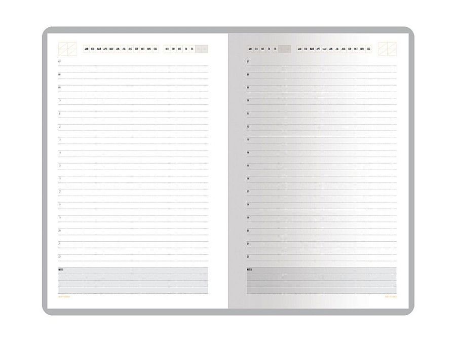 В ежедневнике «Mercury» есть полезная справочная информация, а также 272 страницы для записи идей, мыслей и составления рабочих планов. Для изготовления страниц используется качественный белый офсет повышенной плотности (70 г/кв м), которая производится в Японии и подходит для всех видов чернил.