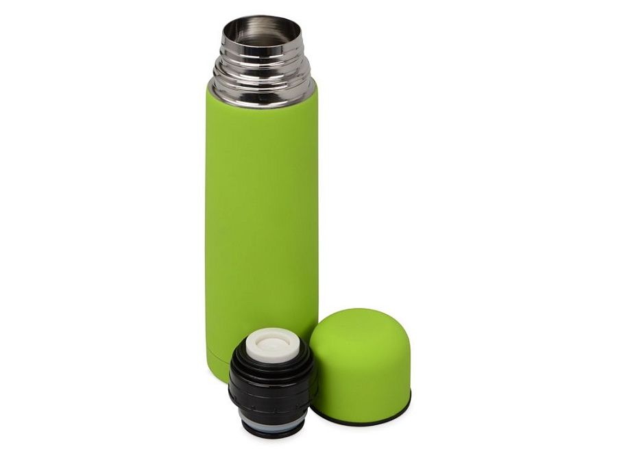 Универсальный термос с мягким прорезиненным покрытием софт-тач. Удобно и приятно держать в руке. Благодаря вакуумной изоляции и двойным стенкам сохраняет напитки горячими 24 часа. Герметичный клапан открывается и закрывается по легкому нажатию. Термос поставляется в дорожном чехле из искусственной кожи.