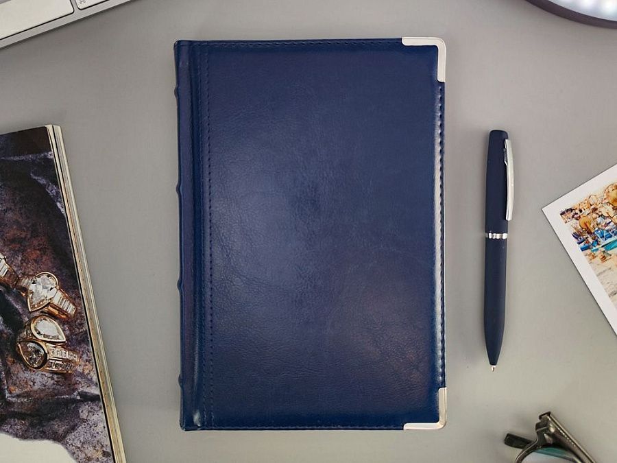 Ежедневник полудатированный Classic Pristine Silver А5, черный с серебром, с металлическими уголками, в твердой обложке с поролоном