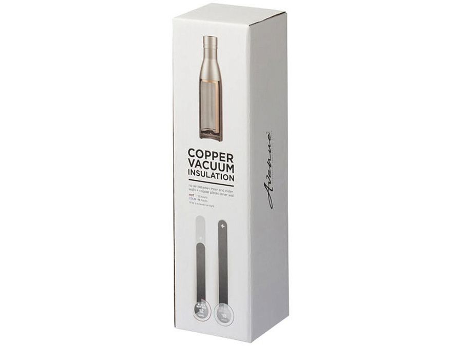Vasa сияющая вакуумная бутылка с изоляцией. Сохраняйте свои напитки горячими в течение 12 часов или холодными в течение 48 часов с медной вакуумной изоляцией Vasa. Двойная стеновая и изготовленная из нержавеющей стали 18/8 с вакуумной изоляцией и внутренней поверхностью, покрытой медью, означает, что ваш напиток остаётся горячим или холодным в зависимости от ваших требований. Бутылка имеет радужную отделку. Объемная емкость - 500 мл. Представлен в подарочной коробке Avenue. Нержавеющая сталь.