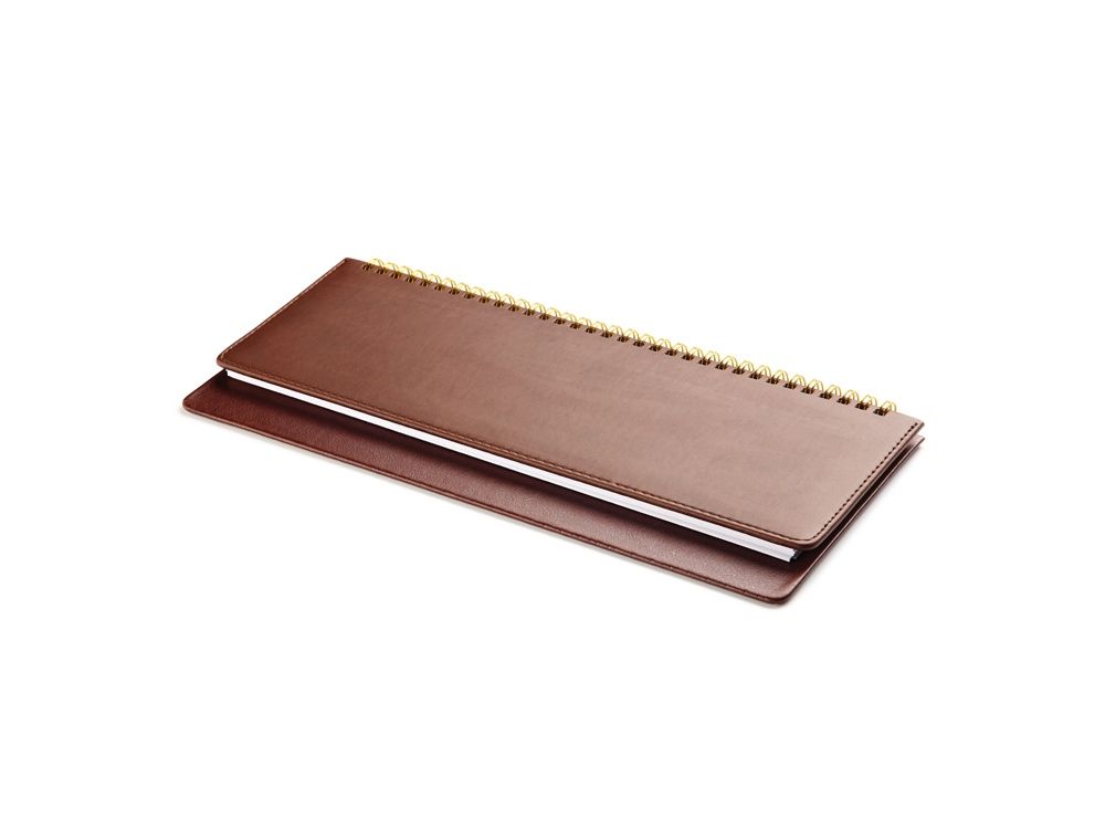 Недатированный планинг выпускается размером 305*130 мм и содержит 128 страниц (блок 292 х100 мм). Для них выбрана высококачественная белая бумага плотностью 70 грамм. Разворот представляет собой разметку на 7 дней недели с графами с указанием времени. Месяц и день недели указаны на русском и английском языках. Первые 15 страниц содержат справочные сведения из различных областей на русском языке. Крепление листов на открытом гребне способствует быстрому переходу по страницам.