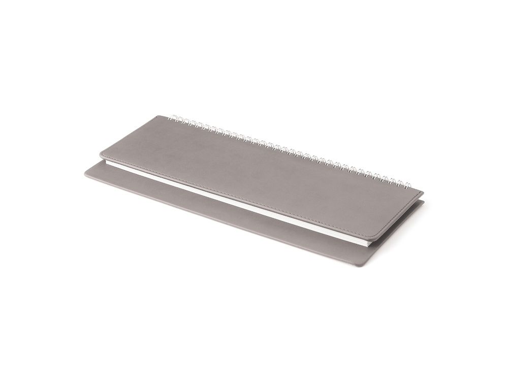 Недатированный планинг выпускается размером 305*130 мм и содержит 128 страниц (блок 292 х100 мм). Для них выбрана высококачественная белая бумага плотностью 70 грамм. Разворот представляет собой разметку на 7 дней недели с графами с указанием времени. Месяц и день недели указаны на русском и английском языках. Первые 15 страниц содержат справочные сведения из различных областей на русском языке. Крепление листов на открытом гребне способствует быстрому переходу по страницам.