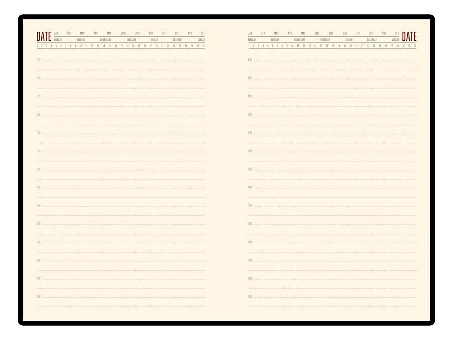 Внутри есть страница для личных данных, а также блок справочной информации (часовые пояса, аэропорты, телефонные коды, размеры одежды, автомобильные коды, римские цифры, расход калорий, формат бумаги, единицы измерения, штрихкоды, распад алкоголя в крови, города миллионники РФ и СНГ, национальные праздники, термины международной торговли, температура, скорость, давление, буквенные коды стран, энергетическая ценность продуктов, страны мира).