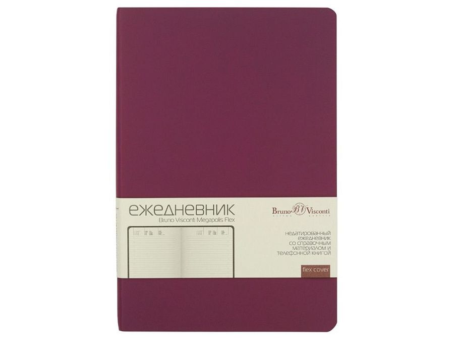 Недатированный ежедневник «Megapolis Flex» от бренда Bruno Visconti - это качественный корпоративный подарок по выгодной цене, произведенный специально под персонализацию. Представлен в универсальном формате А5 и состоит из 272 страниц. Элегантная закругленная flex обложка из гладкого кожзама имеет гибкую конструкцию и приятна на ощупь. А интегральный переплет позволяет сэкономить место в деловой сумке или портфеле – ежедневник можно просто свернуть в трубку или согнуть пополам.