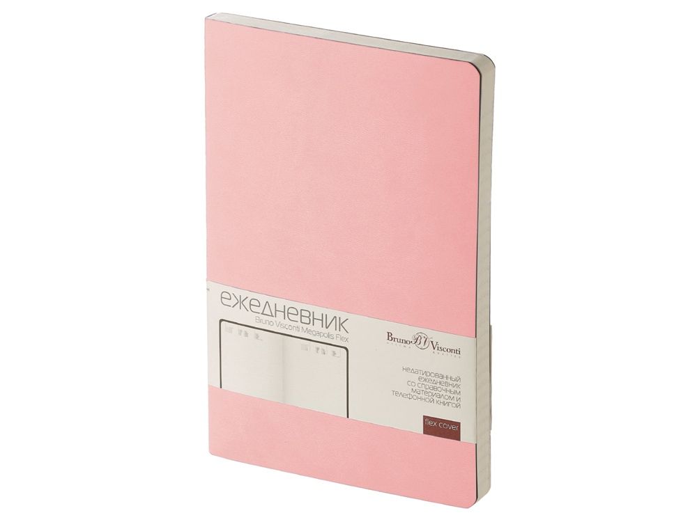 Недатированный ежедневник «Megapolis Flex» от бренда Bruno Visconti - это качественный корпоративный подарок по выгодной цене, произведенный специально под персонализацию. Представлен в универсальном формате А5 и состоит из 272 страниц. Элегантная закругленная flex обложка из гладкого кожзама имеет гибкую конструкцию и приятна на ощупь. А интегральный переплет позволяет сэкономить место в деловой сумке или портфеле – ежедневник можно просто свернуть в трубку или согнуть пополам.