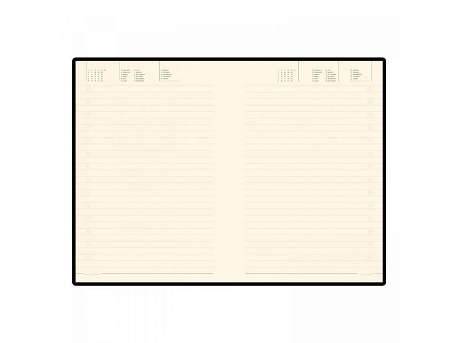 Недатированные деловой ежедневник «Tintoretto». Реальный шов по периметру в цвет материала Гибкий мягкий материал обложки прекрасно подходит для нанесения тиснения. Ежедневники выпускаются в формате В5, его размеры составляют 185 х 230 мм. Блок - 136 листов соединен полускрытым металлическим гребнем. Для блока используется высококачественная бежевая бумага, обладающая плотностью 70 грамм. В начале ежедневника расположены страницы со справочным материалом.
