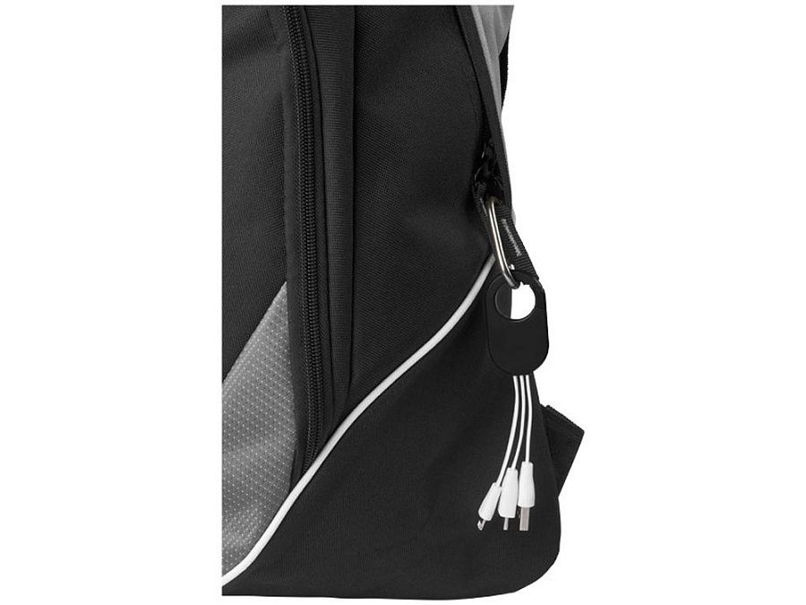 Кабель для зарядки «3-в-1». Кабель для зарядки Troop «3-в-1» с коннектором USB Type C и двойным совместимым коннектором «2-в-1» для устройств Apple® iOS и Android. Кабель оснащен карабином для удобного крепления к сумке. АБС-пластик.