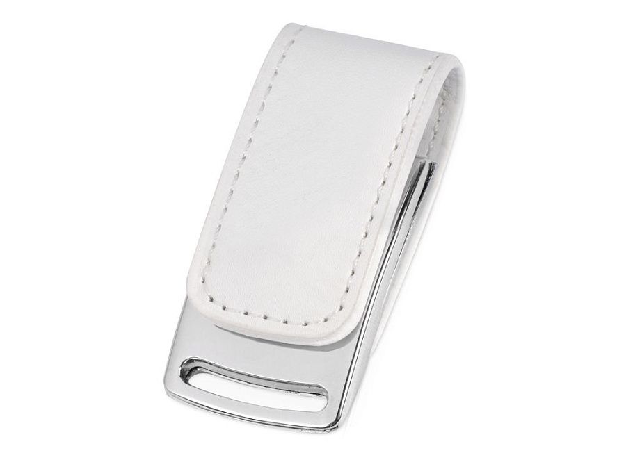 Стильная флешка в металлическом корпусе с кожаной вставкой. Магнитный замок и крепление для переноски.