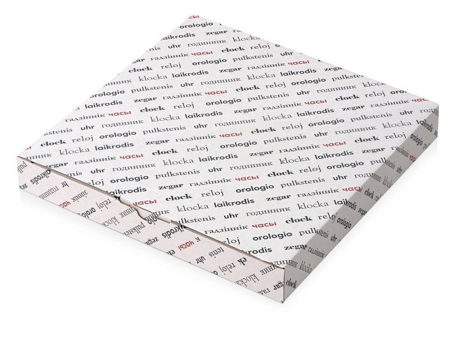 Часы предназначены для вставки циферблата (диаметром 205 мм) с печатью по индивидуальному дизайну. Часы поставляются в разобранном виде. В состав комплекта входит: корпус с механизмом, крышка, стрелки и коробка. Часовая и минутная стрелки - черного цвета, секундная - красного цвета.
