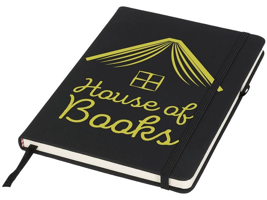 Блокнот Noir среднего размера. Блокнот Noir с мягкой на ощупь черной ПУ обложкой. В каждом блокноте есть цветная застежка, держатель для ручки и лента-закладка. Блокнот содержит 96 листов линованной бумаги (70 г/м²) кремового цвета. ПУ.