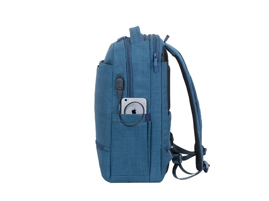 • На боковой стороне рюкзака имеется USB-порт для подключения портативного внешнего аккумулятора.