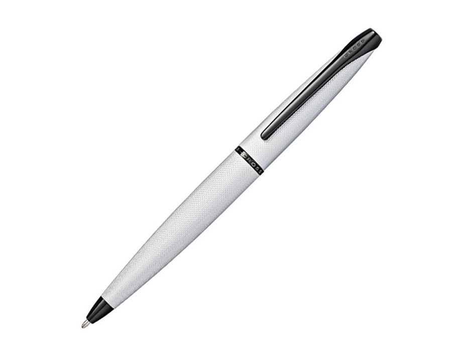 Шариковая ручка Cross ATX Brushed Chrome с гравировкой, полированным покрытием черного цвета и поворотным механизмом.