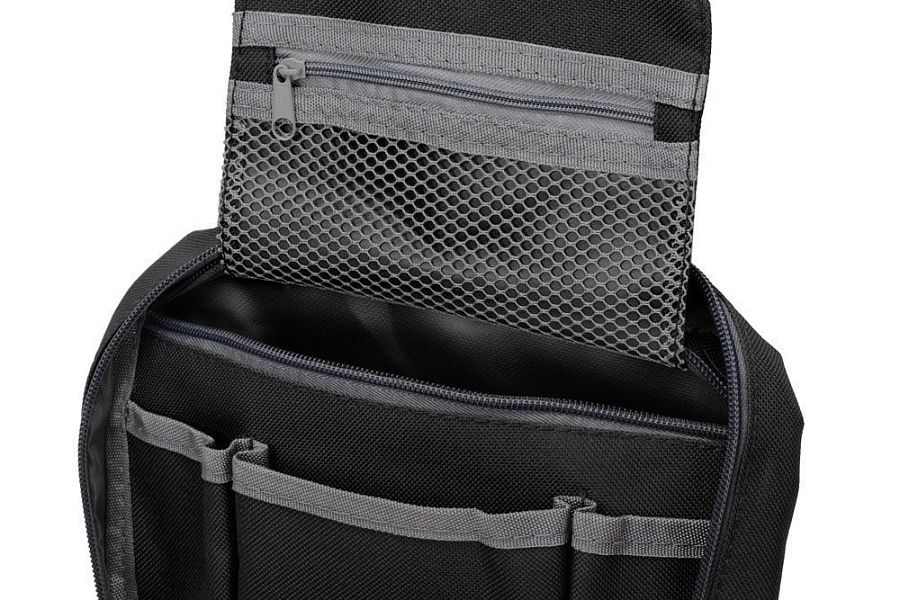 • Вместительное пространство с двумя большими отделениями и несколькими карманами дает возможность эргономично распределить весь дорожный арсенал косметических и туалетных принадлежностей.