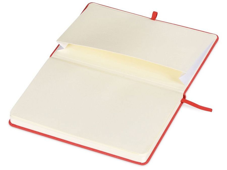 Лаконичный дизайн, приятная на ощупь твердая обложка имеет фактуру ткани. В блокноте 160 линованных страниц кремового цвета с плотностью 80 г/м2, петля для ручки, лента-закладка и удобный карман для карточек и записок.