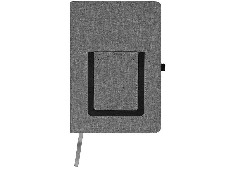 Стильный современный блокнот формата А5. На передней обложке расположен удобный карман для мобильного телефона, бумаг и визиток. Специальная подкладка обложки делает блокнот мягким на ощупь. Покрытие обложки имитирует текстуру текстиля, не скользит и отлично подходит для нанесения логотипа.