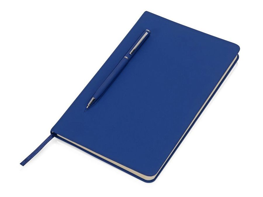 Блокнот формата А5 в твердой обложке со скруглёнными углами и блоком в линейку на 80 листов. Благодаря скрытой магнитной ленте на блокноте можно легко и надежно закрепить металлическую ручку. Зона с магнитом обозначена тиснением в форме ручки.