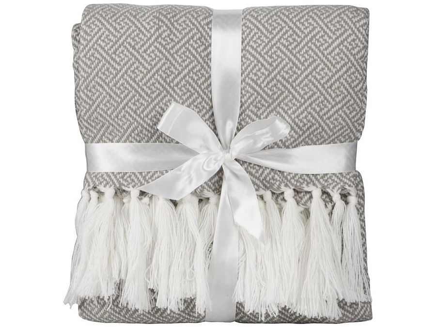 Мягкий плед с бахромой универсальной расцветки отлично впишется в любой интерьер, а благодаря способности акрила хорошо удерживать тепло, он согреет в прохладную погоду дома, на даче или в путешествии. Отличный подарок к любому торжеству!