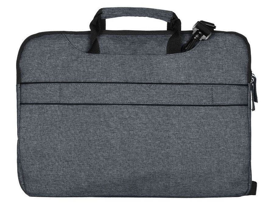 Элегантная сумка для ноутбука 15.6’’. Мягкая прочная велюровая подкладка и утолщенные стенки создают надежную защиту ноутбука от случайных ударов и царапин. Возможность убрать ручки в карманы превращает сумку в чехол для ноутбука или папку для документов. · 2 вместительных внешних кармана под ручками, · 1 карман на молнии на лицевой стороне с органайзером внутри, · отстегивающийся регулируемый ремень на плечо, · ремень для фиксации на чемодане.