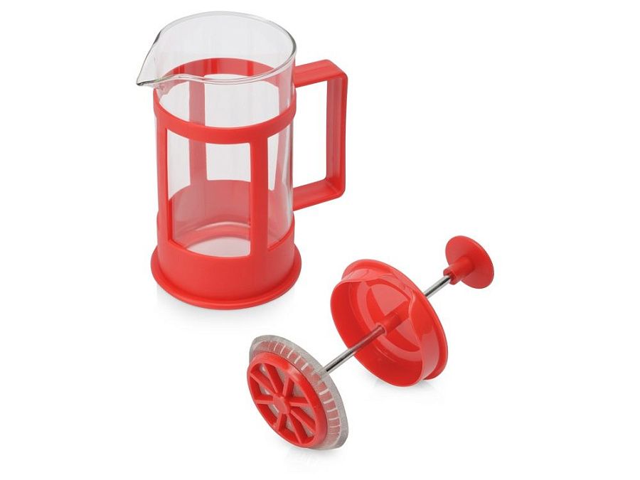 Этот кухонный прибор имеет плотно прилегающую пластиковую крышку, поршень из нержавеющей стали и пресс-фильтр с уплотнительным кольцом из пластика для отделения чайных листьев от воды.