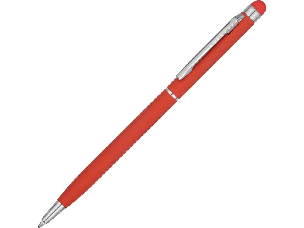 Тонкая металлическая шариковая ручка с поворотным механизмом и стилусом. Приятное на ощупь, не скользящее покрытие софт тач делает письмо особенно комфортным. Функциональный и стильный аксессуар станет отличным подарком.