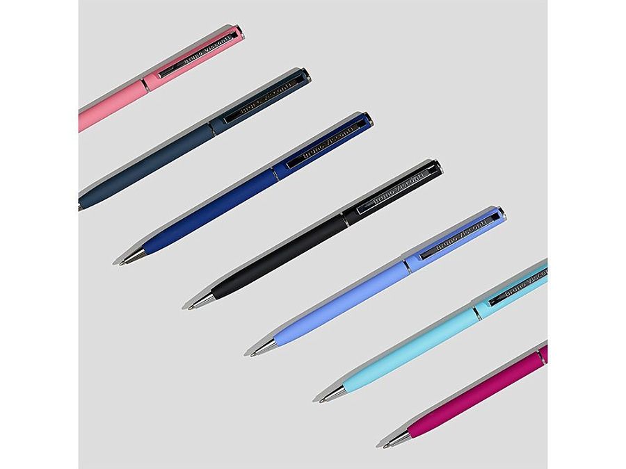 Автоматическая металлическая ручка "Bruno Visconti" серии "Palermo" однотонного цвета порадует любителей всего изящного и утонченного. Покрытие корпуса Soft Touch гарантирует дополнительный комфорт в работе с ней. Стержень легко выдвигается благодаря поворотному механизму. Синие пигментные чернила Dokumental (Германия) и пишущий узел Premec (Швейцария) обеспечивают качественное и мягкое письмо.