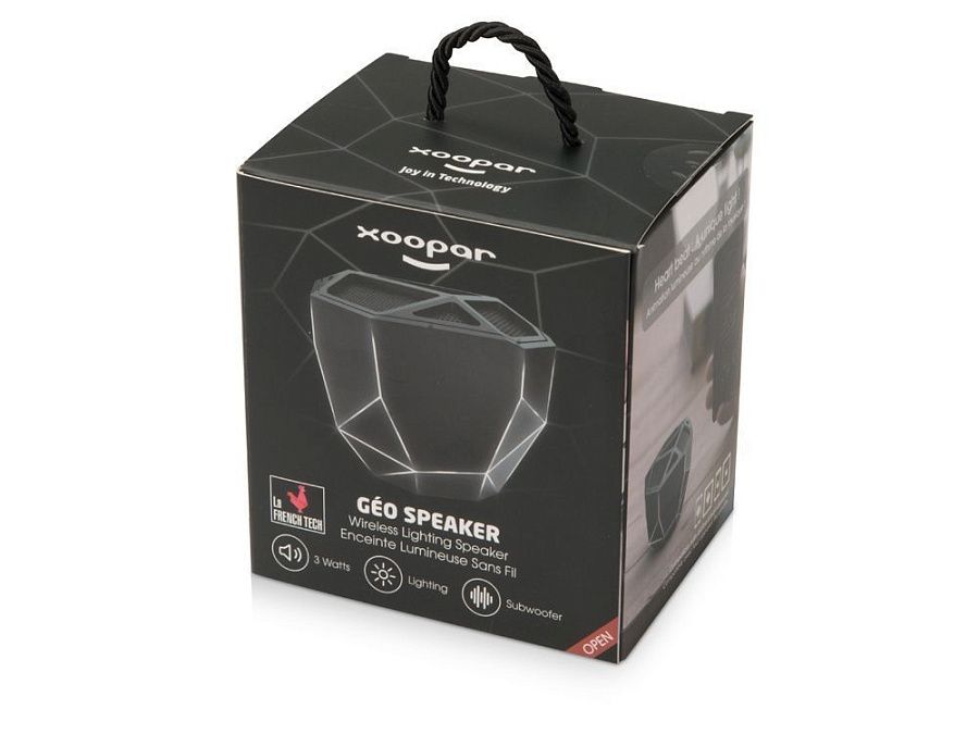 Беспроводной портативный динамик «Geo» — ультрасовременное решение для прослушивания аудио с функцией расширенных басов. Дизайн колонки выполнен в стиле low-poly, главная особенность которого — необычная геометрия форм. Визуальный эффект усиливается одноцветной подсветкой колонки, яркость которой меняется в зависимости от интенсивности звука.