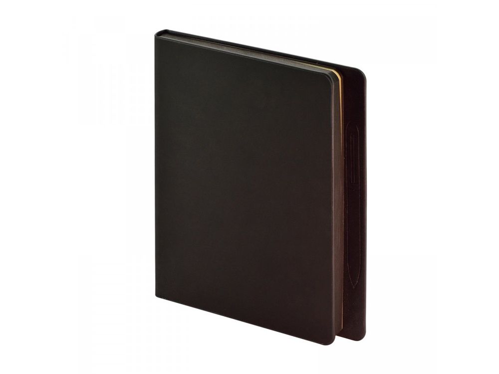 Скругленный угол обложки и блока, обрез окрашен в тон черной обложке. Покрытие обложки Soft Touch. Великолепная бумага 70 г/м. Скрытый магнит для металлической ручки. Ежедневник упакован в картонный полукороб и термопленку.