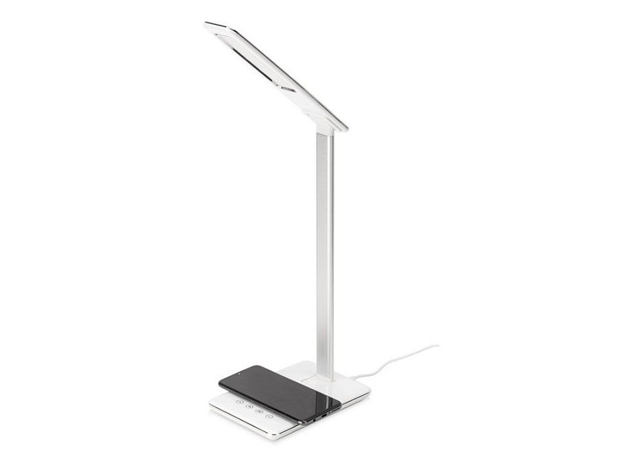 «Умная» функциональная настольная лампа с 3 режимами освещения: теплый желтый свет, нейтральный свет и холодный свет. Равномерно мягкий свет приятен и безопасен для глаз (отсутствует мерцание). На панели основания лампы можно также регулировать яркость и ставить таймер отключения (1 или 2 часа). В лампе предусмотрена беспроводная зарядка Qi-совместимы устройств, чтобы зарядить смартфон – просто разместите его в центре основания, и зарядка автоматически начнется. Выходной порт USB для проводной зарядки устройств. Благодаря продуманной конструкции лампа может принимать практически любые положения.