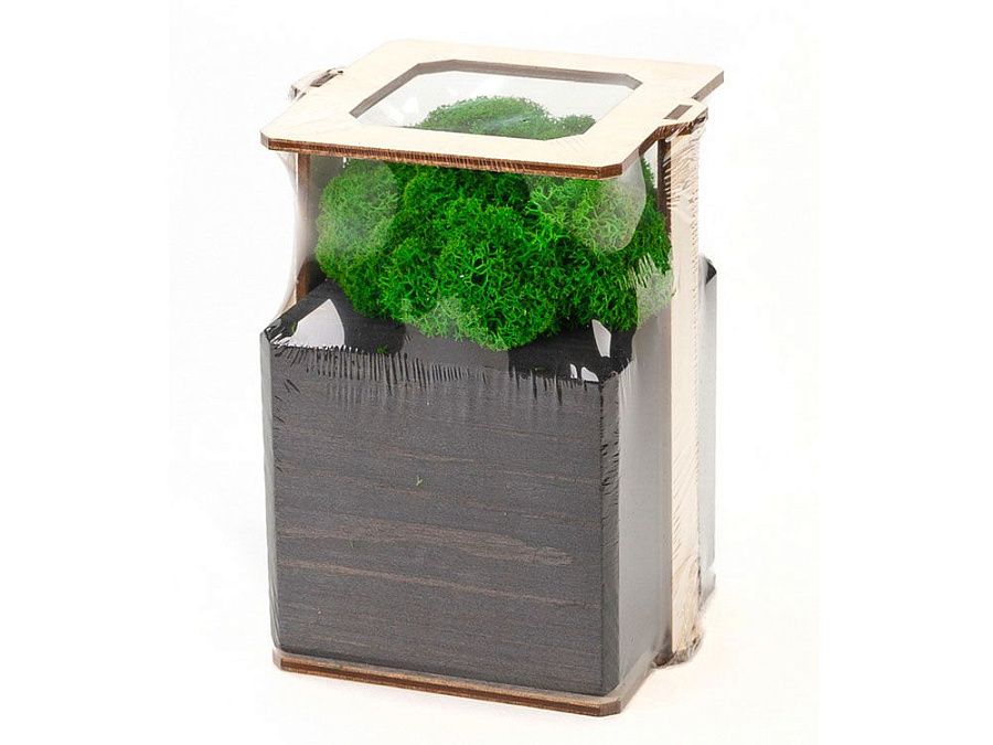 Композиция со мхом создана для любителей официального стиля. Зелень и дерево в интерьере - популярный тренд в области украшения дома или офиса. Специальная обработка мха позволяет не ухаживать за ним до 7 лет. Композиция не требует освещения и полива, успокаивает и дарит положительные эмоции. Изделие состоит из стабилизированного мха ягеля, деревянного куба и деревянного упаковочного каркаса. Отталкивает пыль и придает интерьеру индивидуальность. Размер изделия 8х8х13 см.
