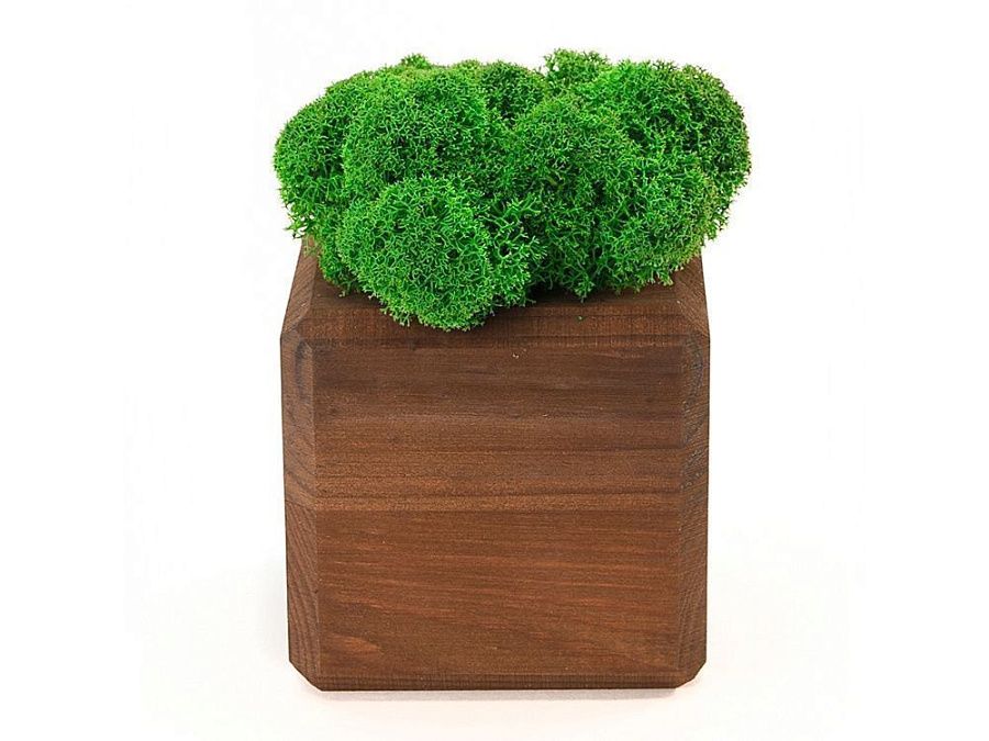 Изделие состоит из стабилизированного мха ягеля, деревянного куба и деревянного упаковочного каркаса. Отталкивает пыль и придает интерьеру индивидуальность. Размер изделия 8х8х13 см.