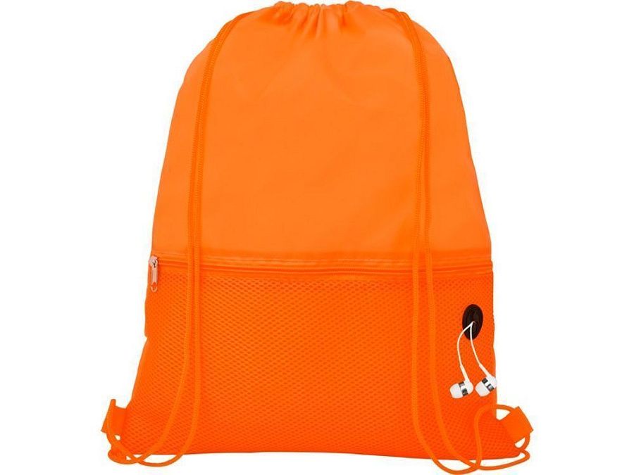 Рюкзак со шнурком и главным отделением на шнуровке в цвет изделия. Имеет один передний сетчатый карман на молнии и порт для наушников. Прочность до 5 кг.