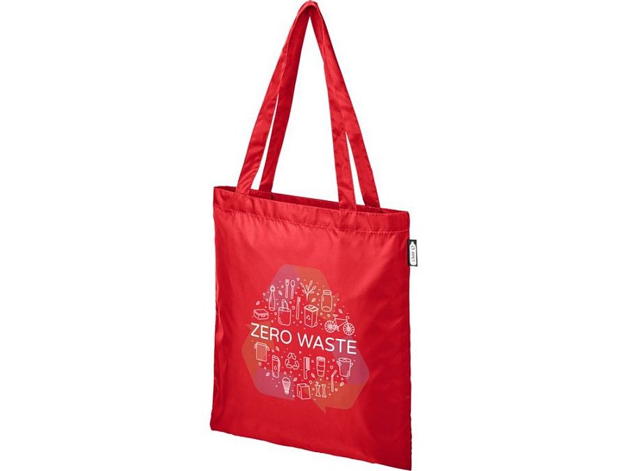 Прочная сумка, изготовленная на 100% из переработанного пластика, предназначенного для повторного использования, что способствует уменьшению количества пластиковых отходов. Имеет две ручки, высота в раскрытом состоянии — 27 см. Выдерживает вес до 10 кг.