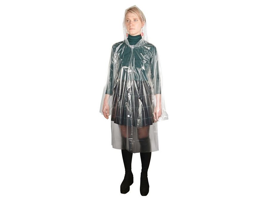 Многоразовый дождевик-плащ отлично подходит как для повседневного использования так и для масштабных мероприятий. Дождевик с длинным рукавом и капюшоном, застегивается на кнопки-липучки, выполнен из плотного полиэтилена, поставляется в прозрачном пакете с клапаном.