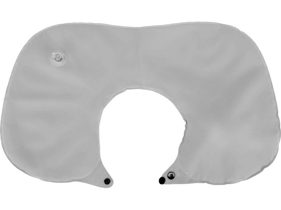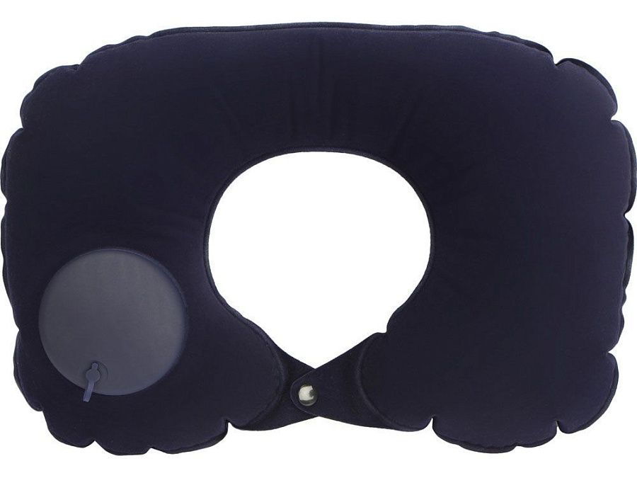 На обратной стороне от насоса-помпы находится клапан для сдувания воздуха из подушки. Двухуровневая фиксация кнопками позволит выбрать наиболее комфортное положение на шее. В комплекте идет чехол на завязках для хранения и удобной транспортировки.