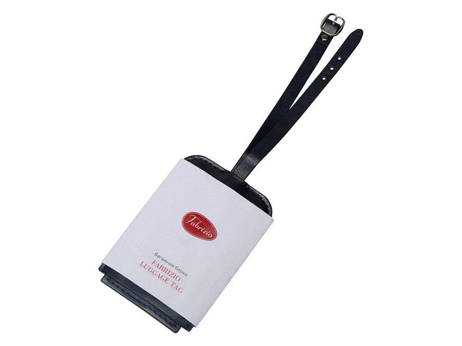 Продукция линейки Fabrizio выглядит элегантно и богато, а ее ассортимент состоит из разнообразных товаров, обладающих "фамильным" лоском Fabrizio. Все товары выполнены из PU-кожи, искусственного материала, который напоминает натуральную, но создан с любовью к природе - при создании продукции Fabrizio ни одно животное не пострадало. Материал прекрасно подходит для тиснения, которое особенно выигрышно будет смотреться на столь роскошных аксессуарах. Багажная бирка – вещь, которая пригодится в любом путешествии. Легко и надежно крепится, имеет поле для записи данных владельца.