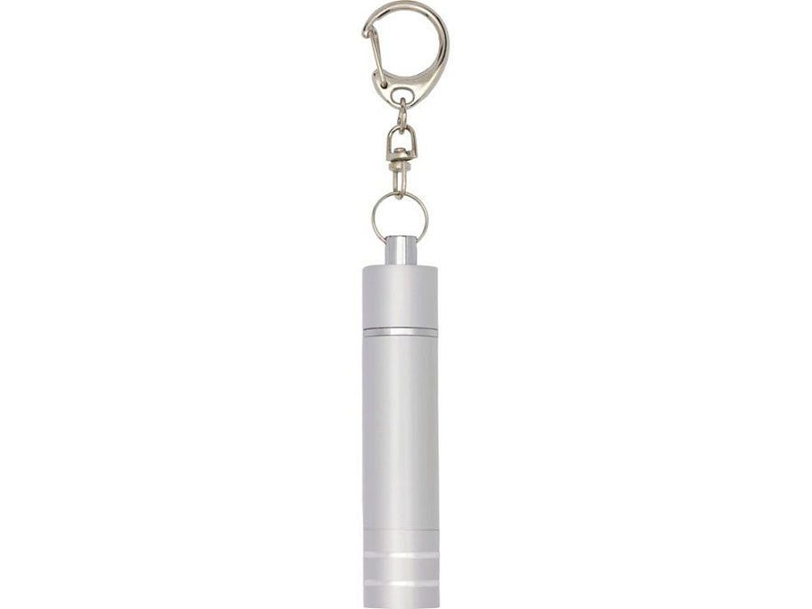 Удобный брелок-фонарик со светодиодными лампами с функцией фонаря и подсветки. Белая светодиодная лампа имеет световой поток 5 люмен и управляется кнопочным выключателем питания. Вытяните корпус для более яркого освещения. Поставляется с металлическим зажимом для удобного крепления на сумке или связке ключей. Батарейки входят в комплект. Алюминий.