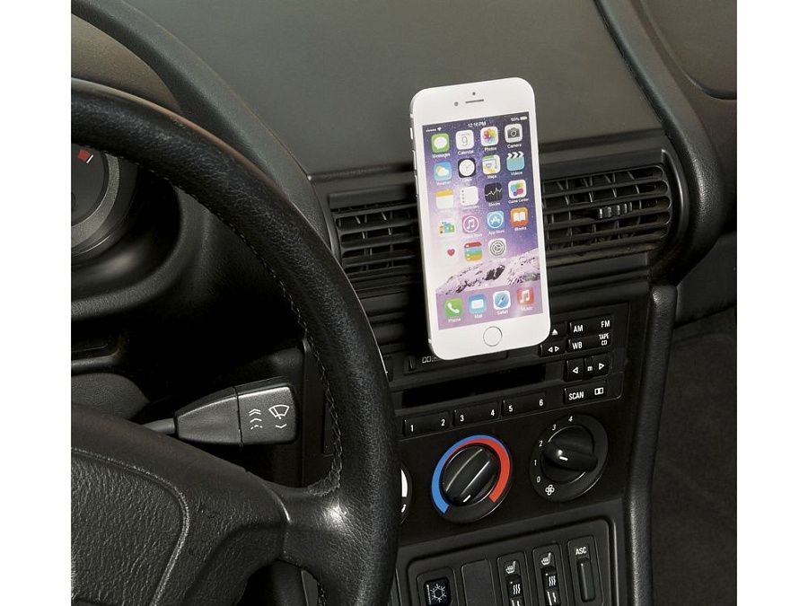 Магнитный держатель для телефона. Этот магнитный держатель для телефона полезен для использования в автомобиле. Он превосходно удерживает телефон во время вождения. Держатель состоит из 2 частей: металлической пластины и держателя телефона. В держателе для телефона есть 4 встроенных магнита, и его можно легко прикрепить к вентиляционной решетке вашего автомобиля. Металлическую пластину можно прикрепить к задней стороне смартфона или крышке телефона. Размер металлической пластины – 6,5 х 4,5 см. АБС-пластик и силикон.