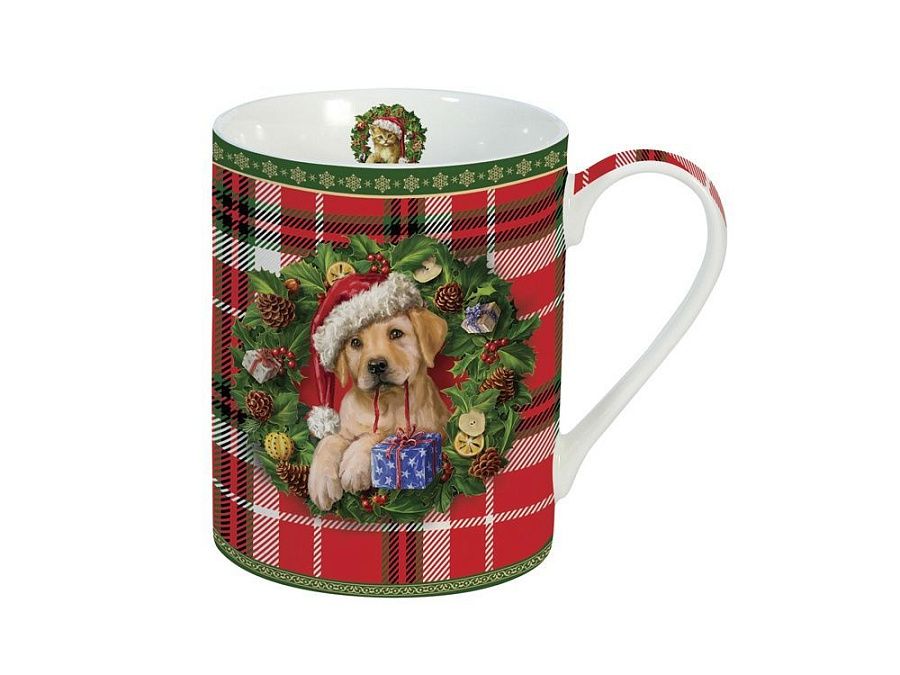 Оригинальная милая кружка с изображением щенка в рождественском колпаке. А внутренняя часть кружки украшена котенком. Цветовая гамма кружки классическая шотландская клетка. Кружка «Настоящий друг» - трогательный новогодний или рождественский подарок. Кружка изготовлена из фарфора и упакована в подарочную коробку.