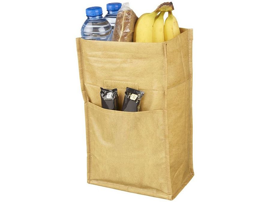 Сумка холодильник в виде бумажной. Сумка в виде культового коричневого бумажного пакета. Основное отделение с изоляционной подкладкой, застежка - липучка (Velcro®) , для закрытия нужно закрутить верхнюю часть. Ламинированный 110г нетканый полипропилен.