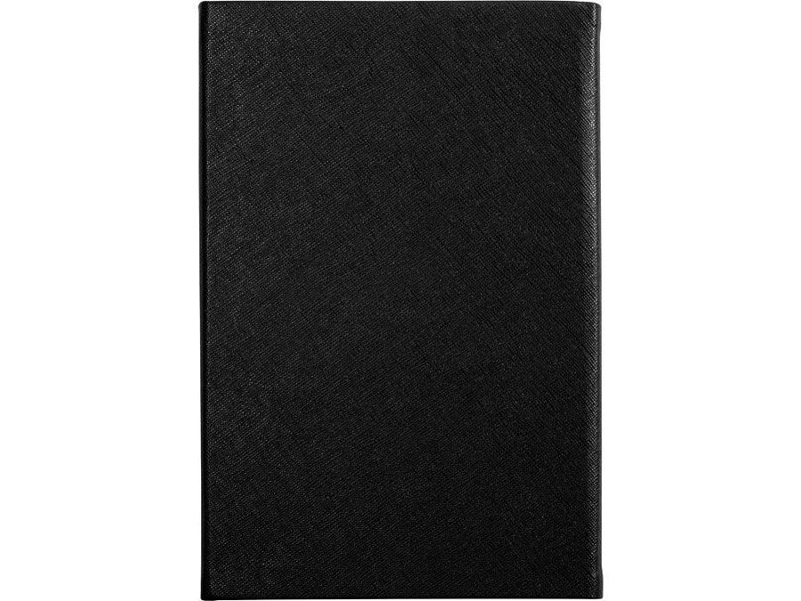Эксклюзивный блокнот формата A5 с обложкой из термополиуретана, черной лентой-закладкой, застежкой на магните и 80 линованными листами (80 г/м²) кремового цвета. Предлагается с шариковой ручкой.