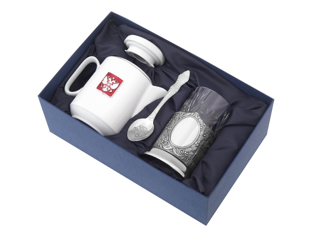 Чайный набор «ЭГОИСТ» - это идеальный подарок для ценителей русской культуры. Набор состоит из золотистого подстаканника, хрустального стакана, ложки и фарфорового чайника. Чайный набор совмещает в себе практическую пользу и традиционную эстетику.