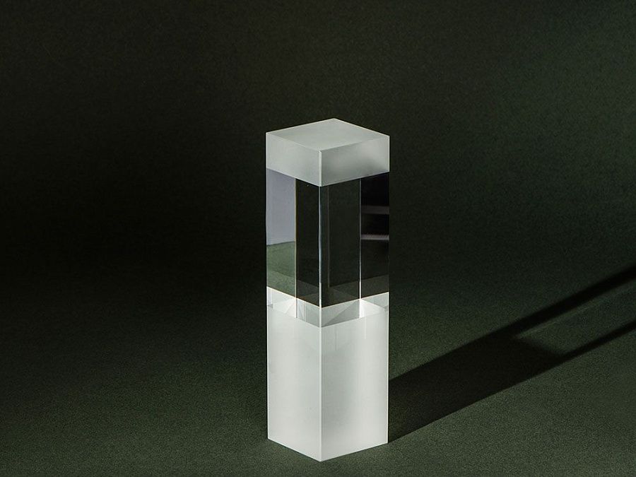 Сочетание глянцевого и матового стекла, а также небольшой размер награды придают ей особенную изящность и лаконичность. Нанесение на матовой поверхности отличается выразительной контрастностью.