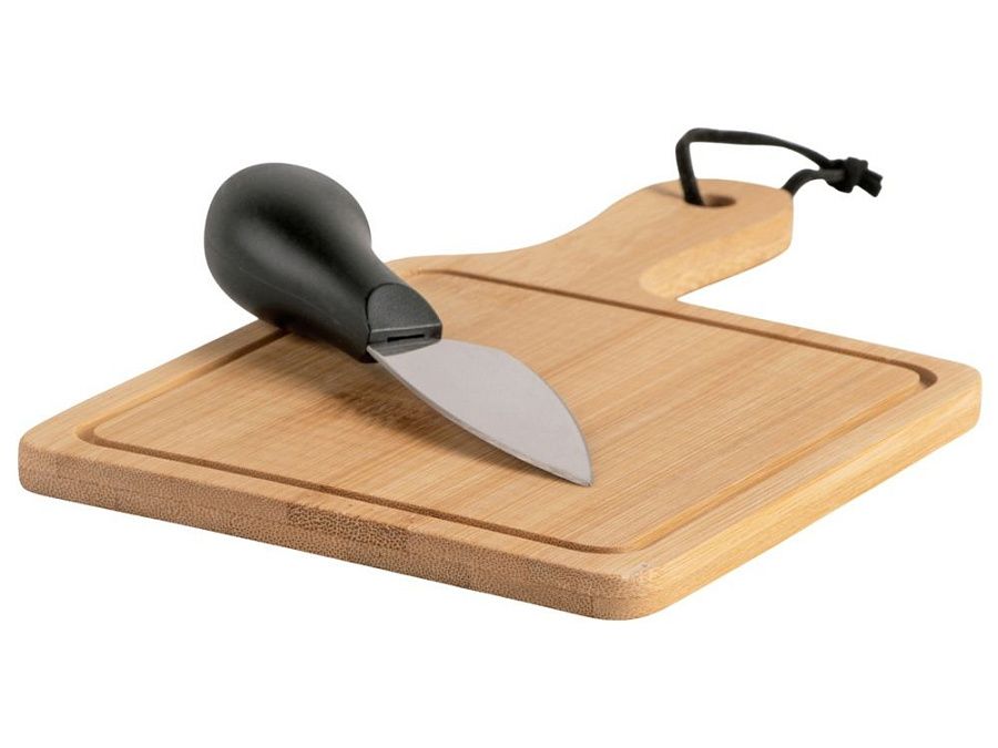 Набор для сыра состоит из небольшой доски и ножа - с их помощью можно красиво подать любую закуску. Для производства доски используется натуральный бамбук, а нож выполнен с использованием высококачественной нержавеющей стали.