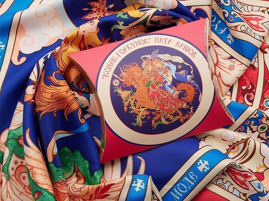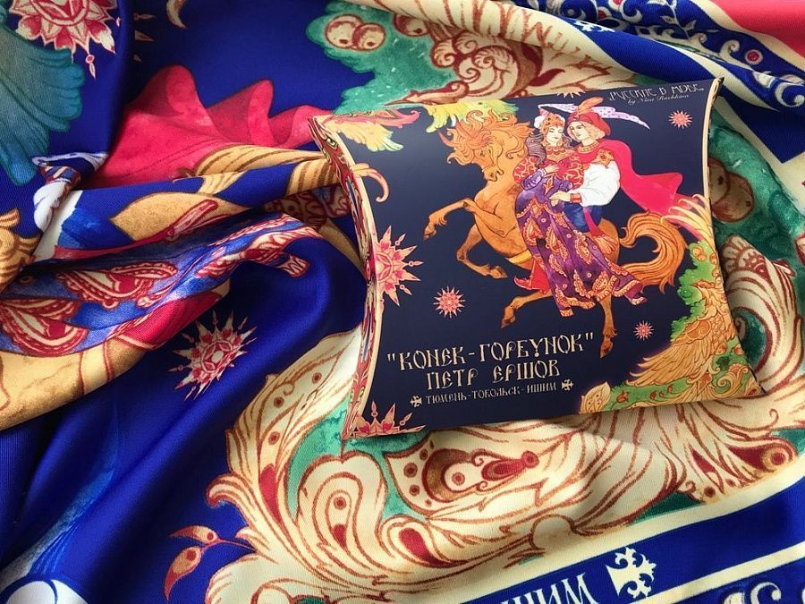 Прочитав сказку юного дарования, сам великий Александр Сергеевич Пушкин сказал: «Этот род сочинений я могу теперь оставить» - и Петр Ершов был принят в круг петербургских писателей.В этом году сказке из золотого фонда русской литературы, переведенной на все языки мира, исполняется 185 лет. Ее яркие краски мы перенесли на шелк и создали платок «Конек-Горбунок».