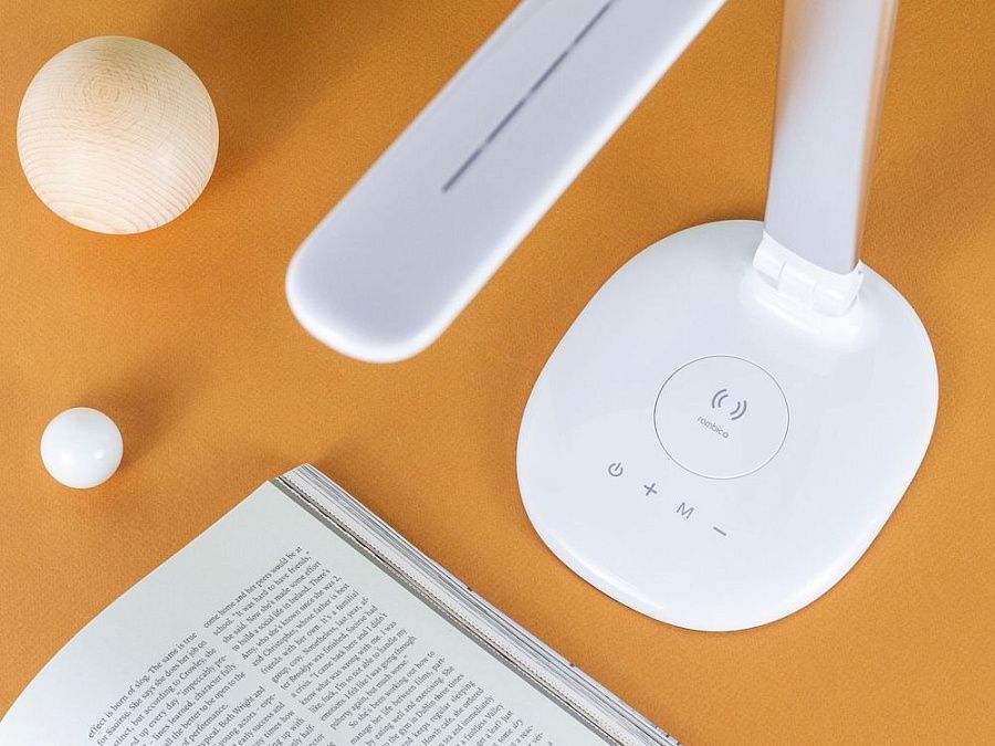 Настольная лампа с беспроводной зарядкой Stark, белая
