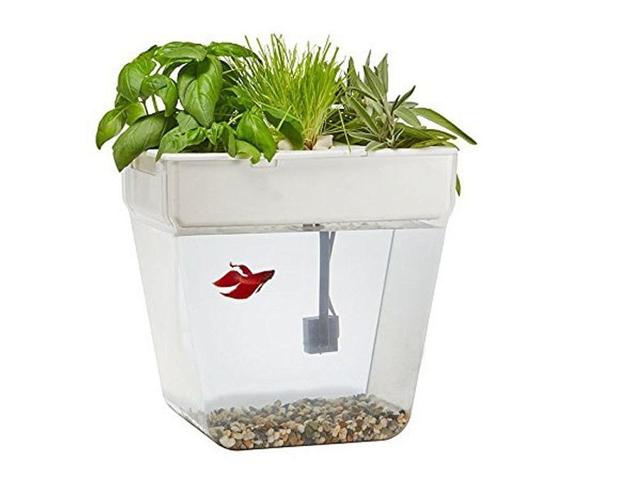По сути — это замкнутая экосистема, поддерживающая баланс между растениями и рыбкой. Её отходы с помощью насоса поднимаются к горшочкам сверху и питают вашу маленькую плантацию. Взамен рыбка получает очищенную воду, а у любого городского жителя всегда есть в наличии свежая зелень к столу.