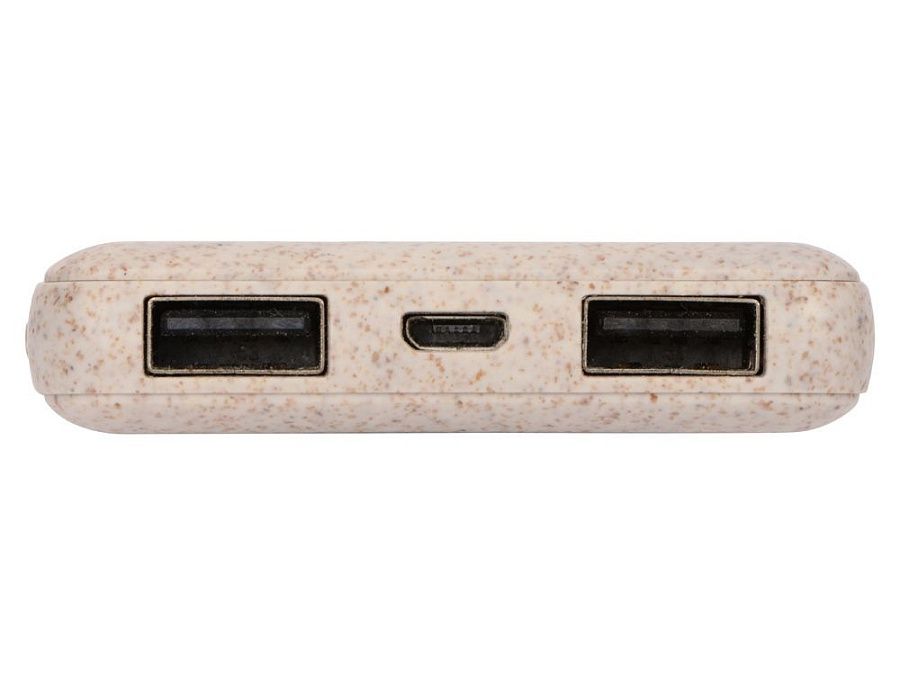 Портативное зарядное устройство "Wheatty" на 35% состоит из переработанной пшеничной соломы, что является положительным примером сокращения производства и потребления пластика в мире. Повербанк имеет миниатюрный размер и небольшой вес. Может заряжать два устройства одновременно. Поставляется в крафт упаковке из переработанной бумаги.