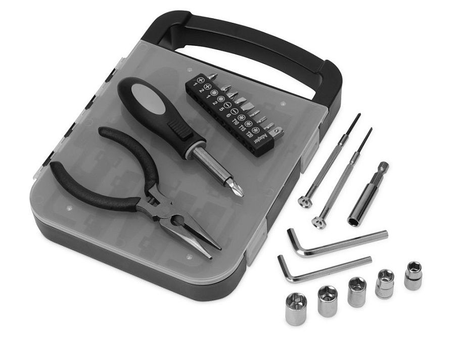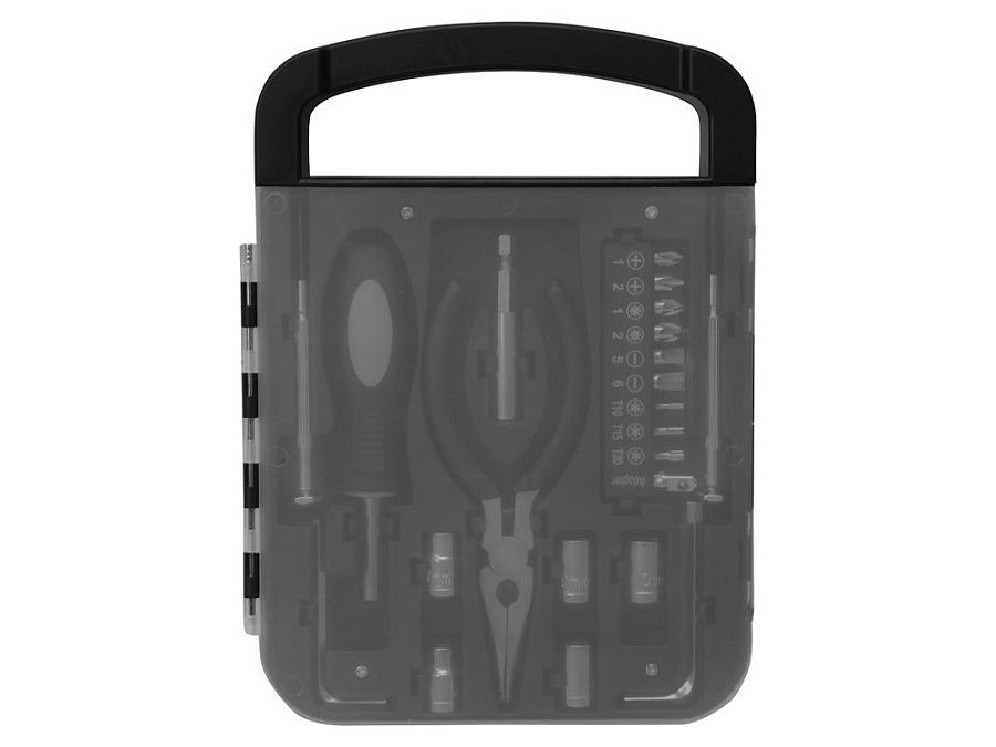 Набор инструментов в удобном пластиковом кейсе, состоит из 6 инструментов и 16 насадок: